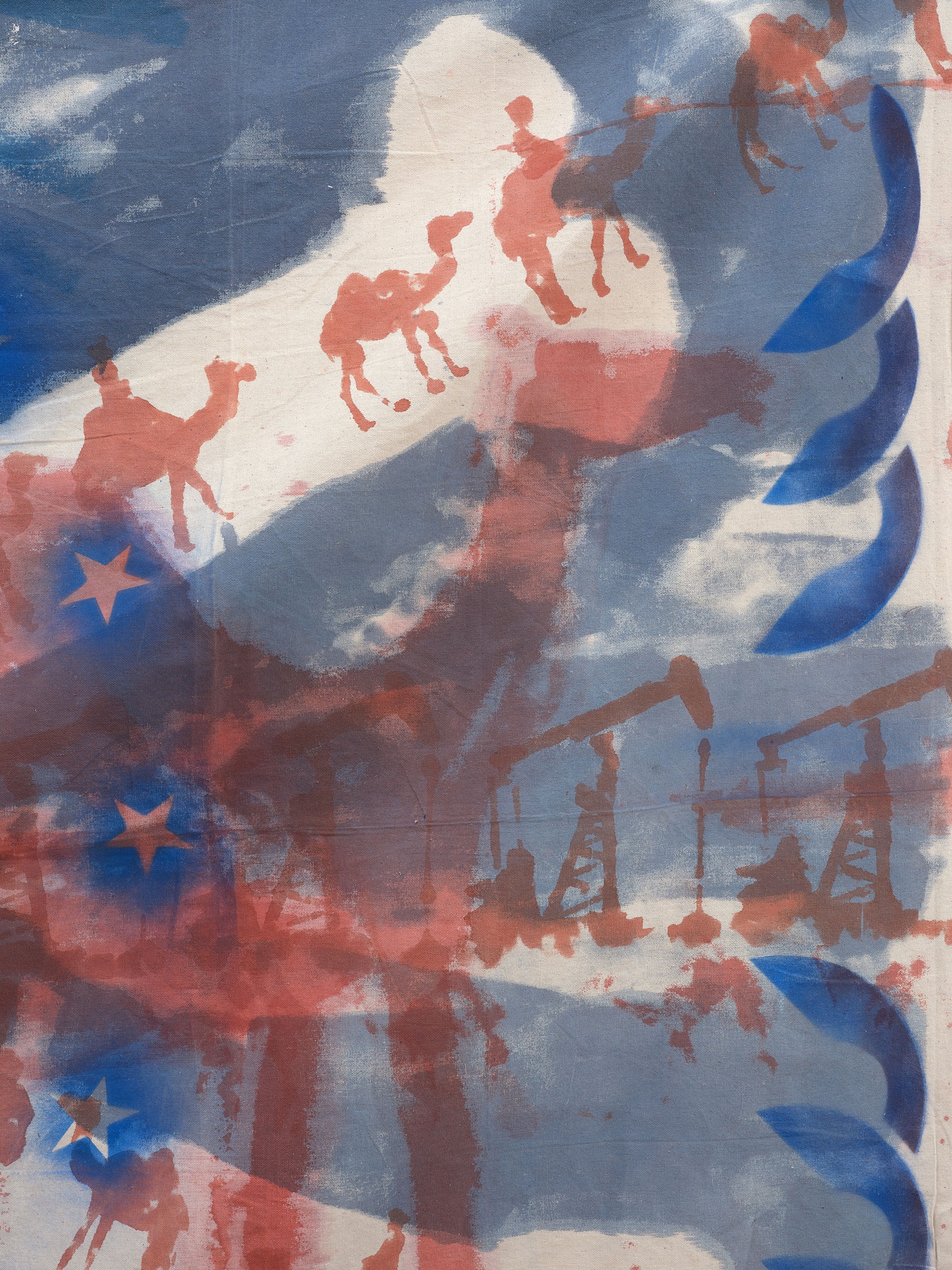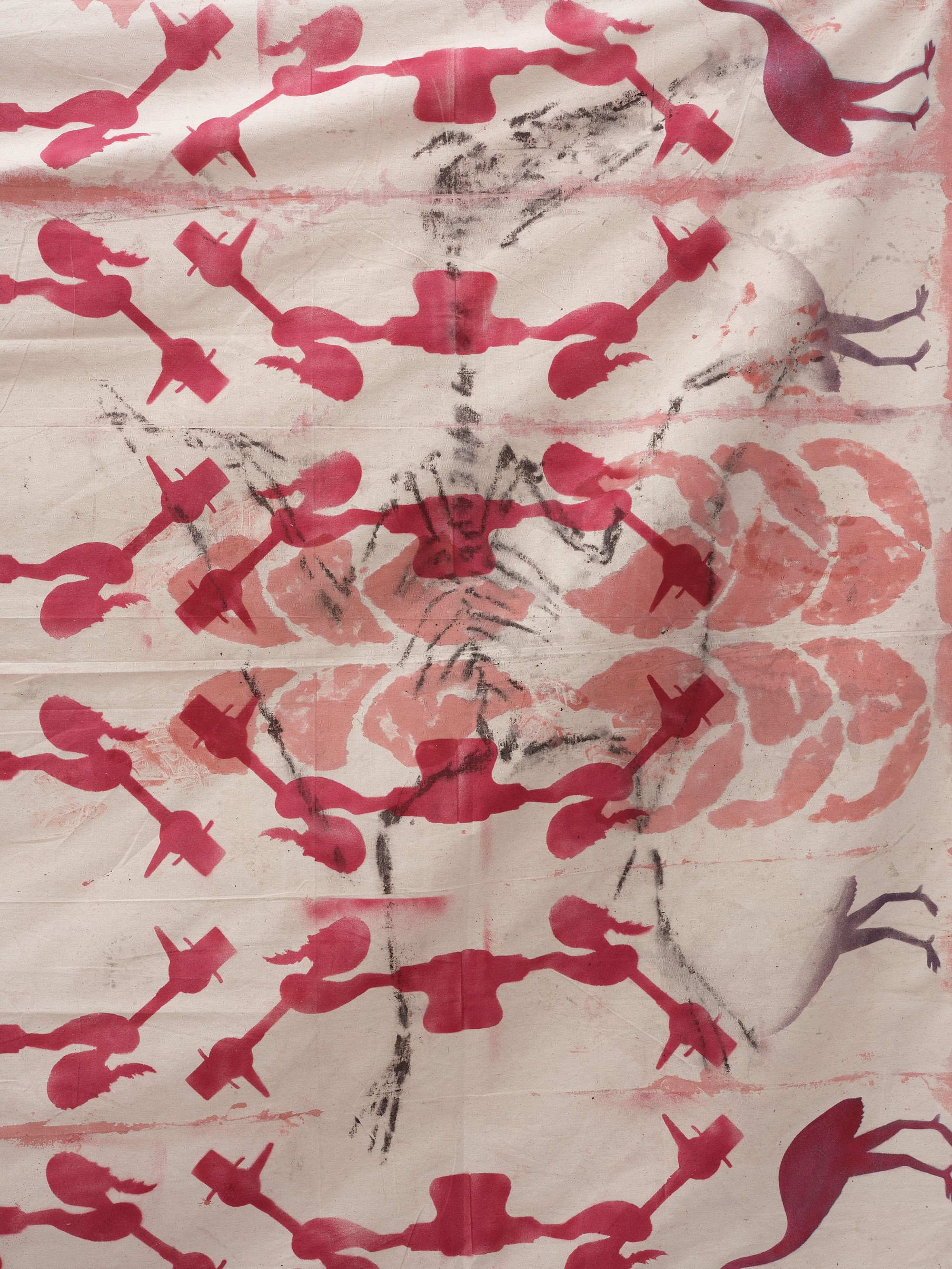acrylic spray and acrylic on canvas drop-sheet