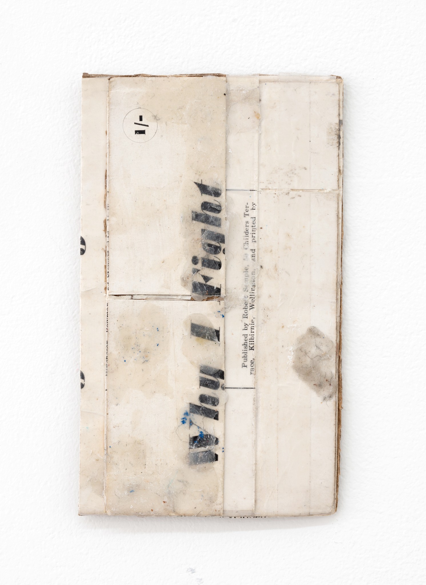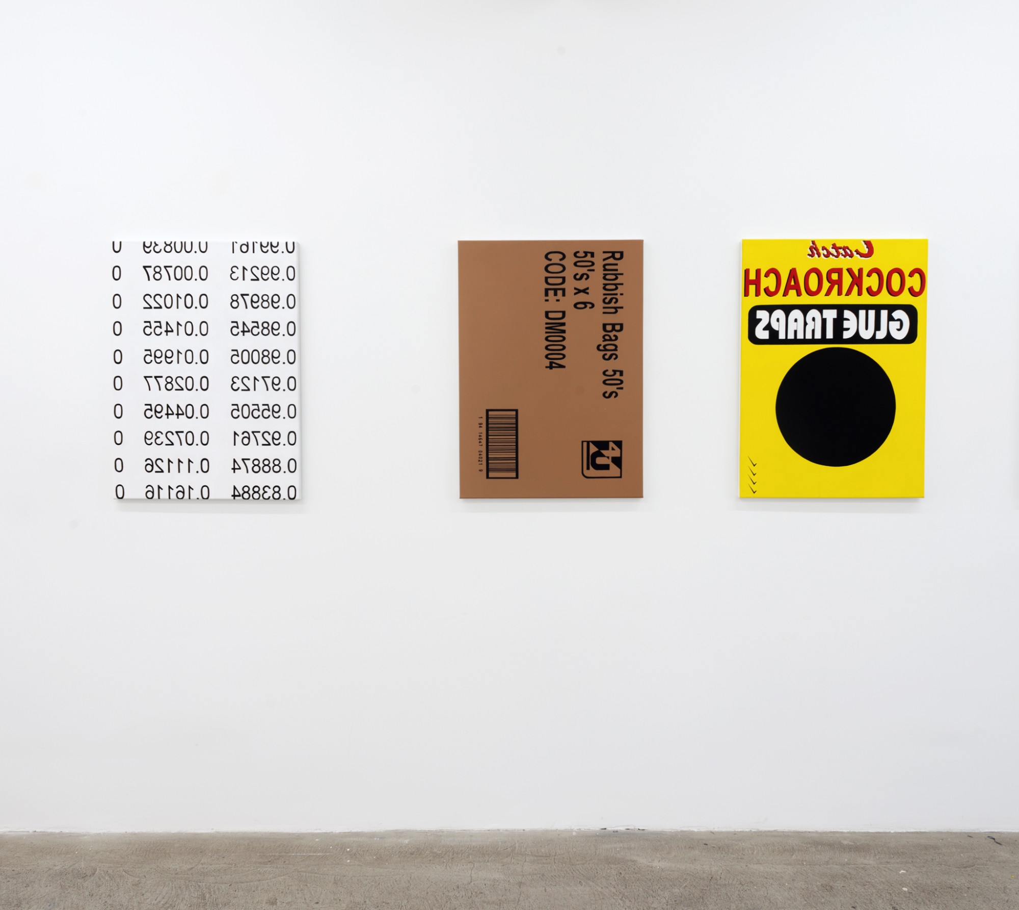 The exhibition comprises new painting and sculpture made from dislocated and manipulated images, objects, and documents. Cardboard boxes, cockroach traps, clocks, are presented in proximity to a re-made Dubuffet painting, medical supplies, labour time-sheets, an anti-communist pamphlet, and an extract from a Statistics New Zealand life table that charts the population’s mortality.