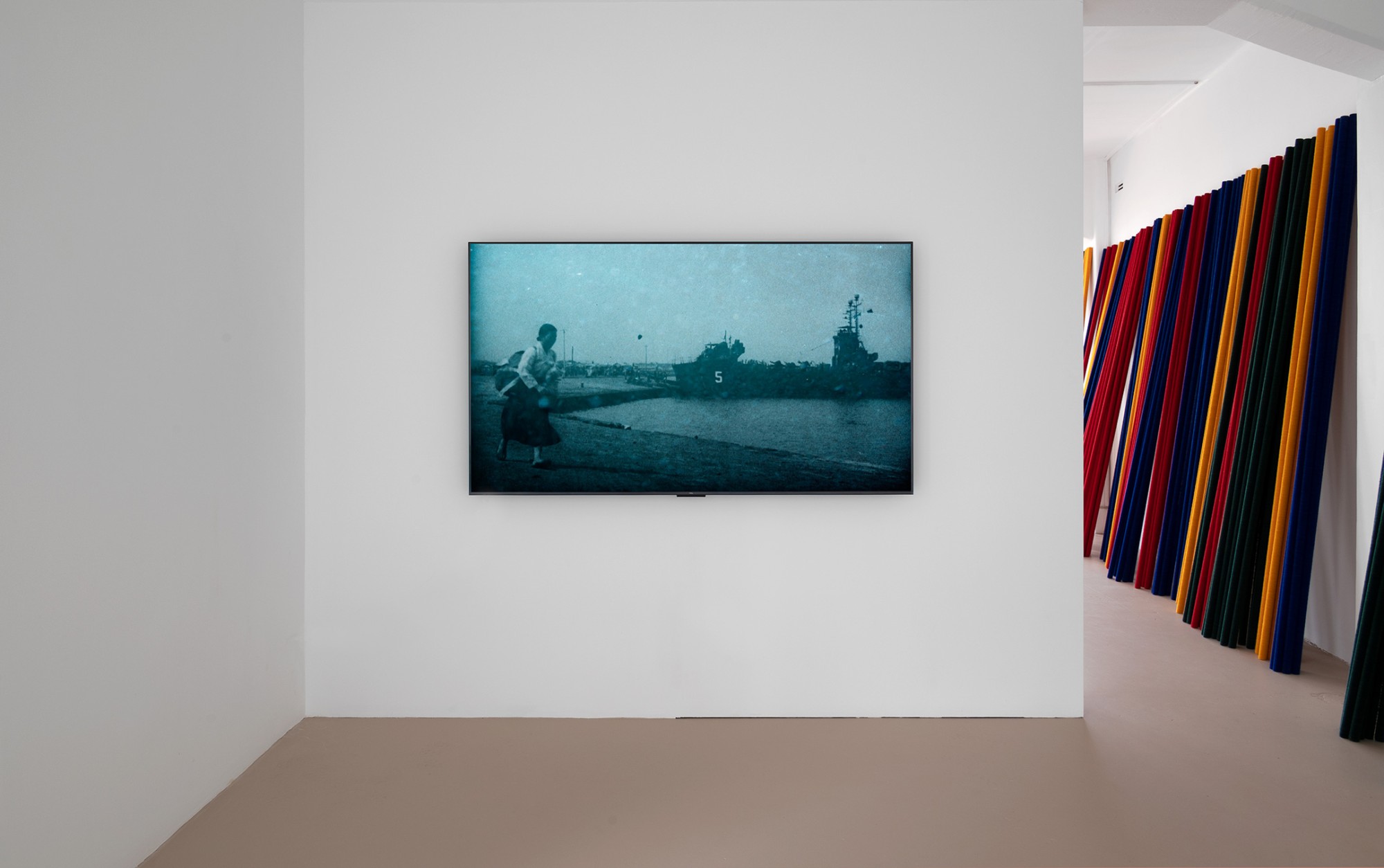 Jane Jin Kaisen’s Wreckage deftly combines archival propaganda film produced by the US Army in October 1945 –that depicts Korean soldiers loading massive piles of weapons and artillery left by the Japanese onto a large ship and dumping them into the ocean– with underwater footage of a shaman’s ritual and lament. The lament is for the unknown numbers of civilians who were killed and thrown into the sea during the Jeju Massacre, unraveled in 1948 under the authority of the United States Army Military Government in Korea.