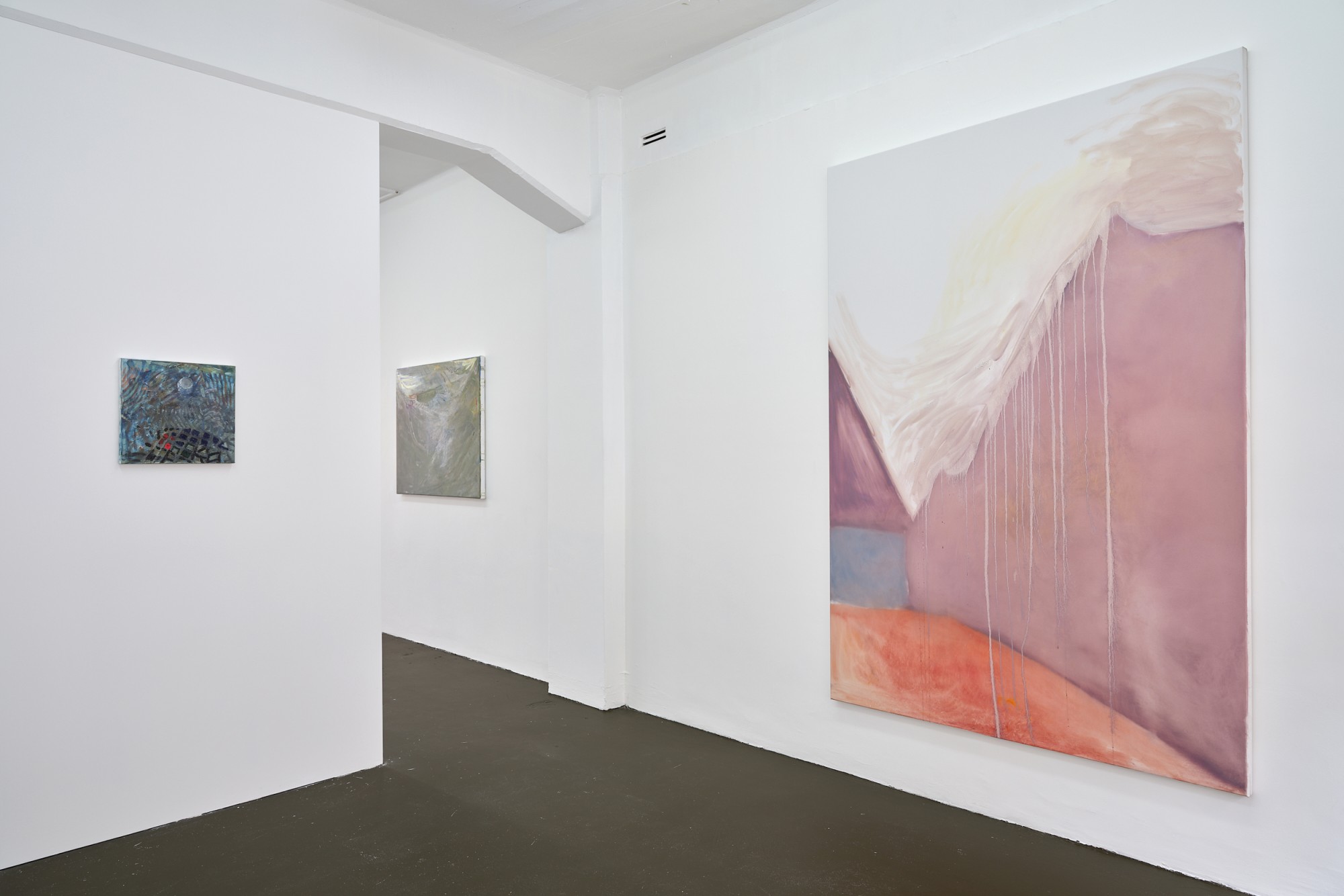 Shivers is the artist’s first solo exhibition since returning to Aotearoa from Europe. The show comprises very large and very small paintings that, as always, offer the medium at its most elastic and most expressive. Some paintings in Shivers are densely woven nets, full of gaps or portals to concealed spaces behind, while in others gestural marks sail lightly over the canvas. All quiver with emotion that shifts restlessly from painting to painting.