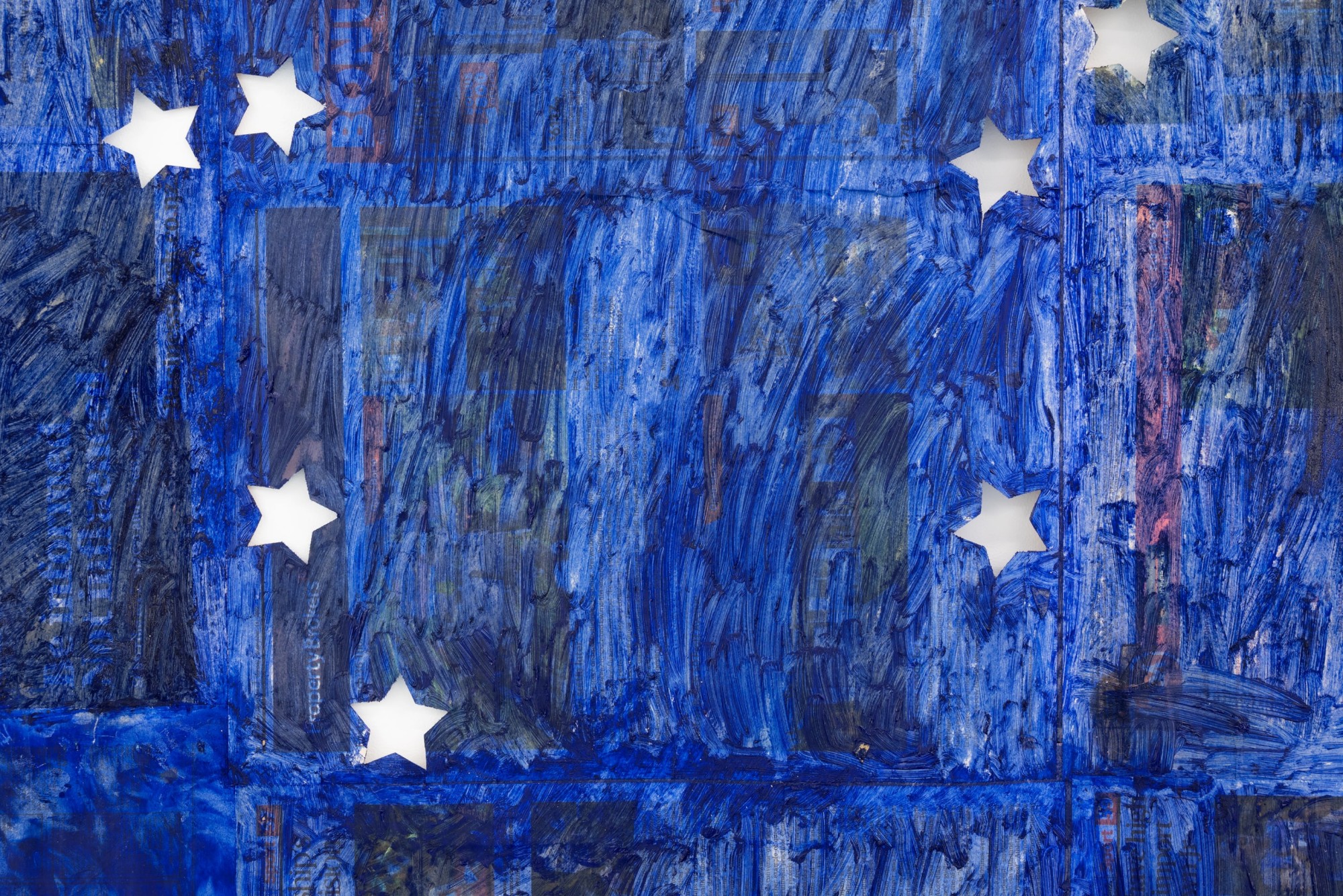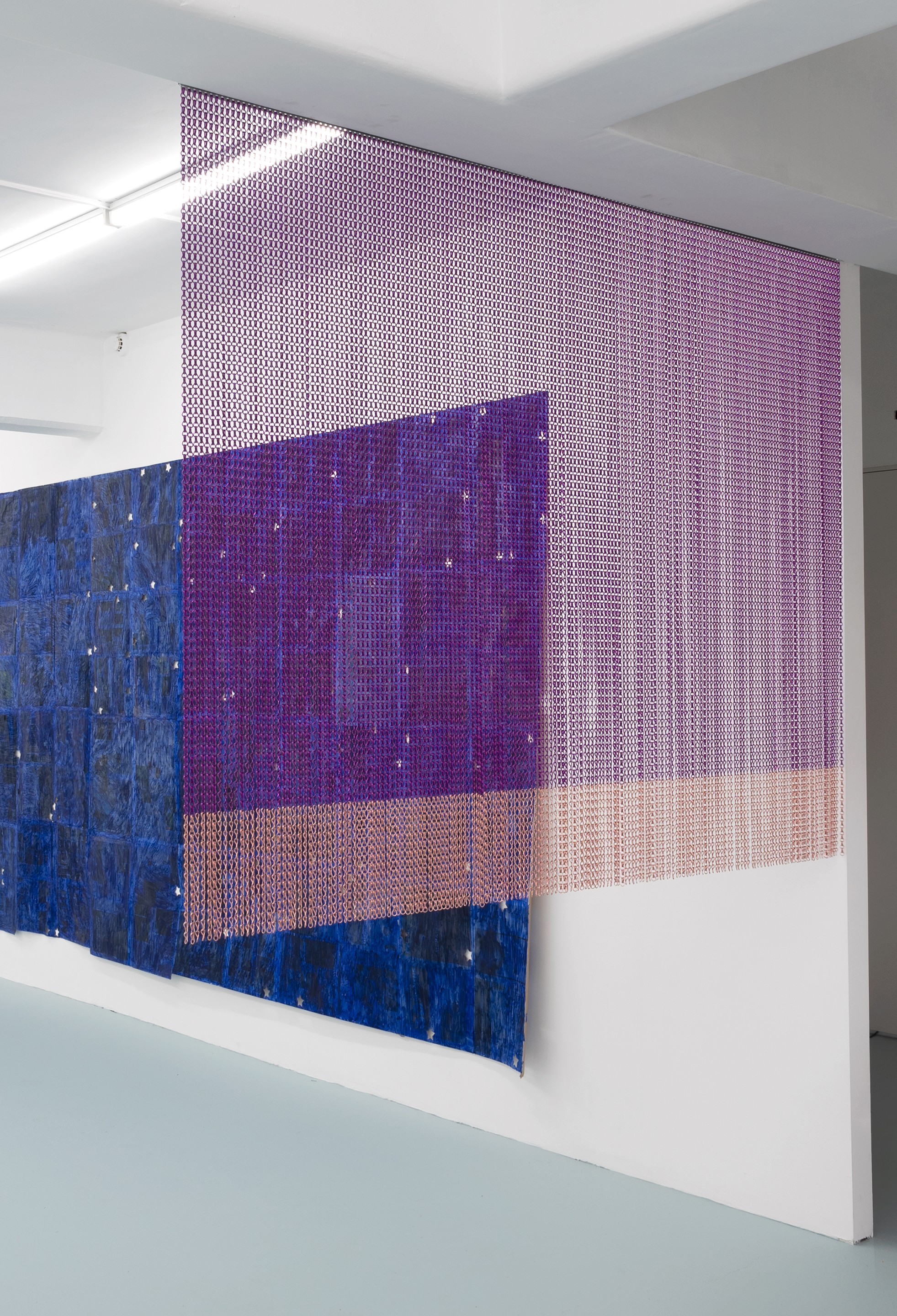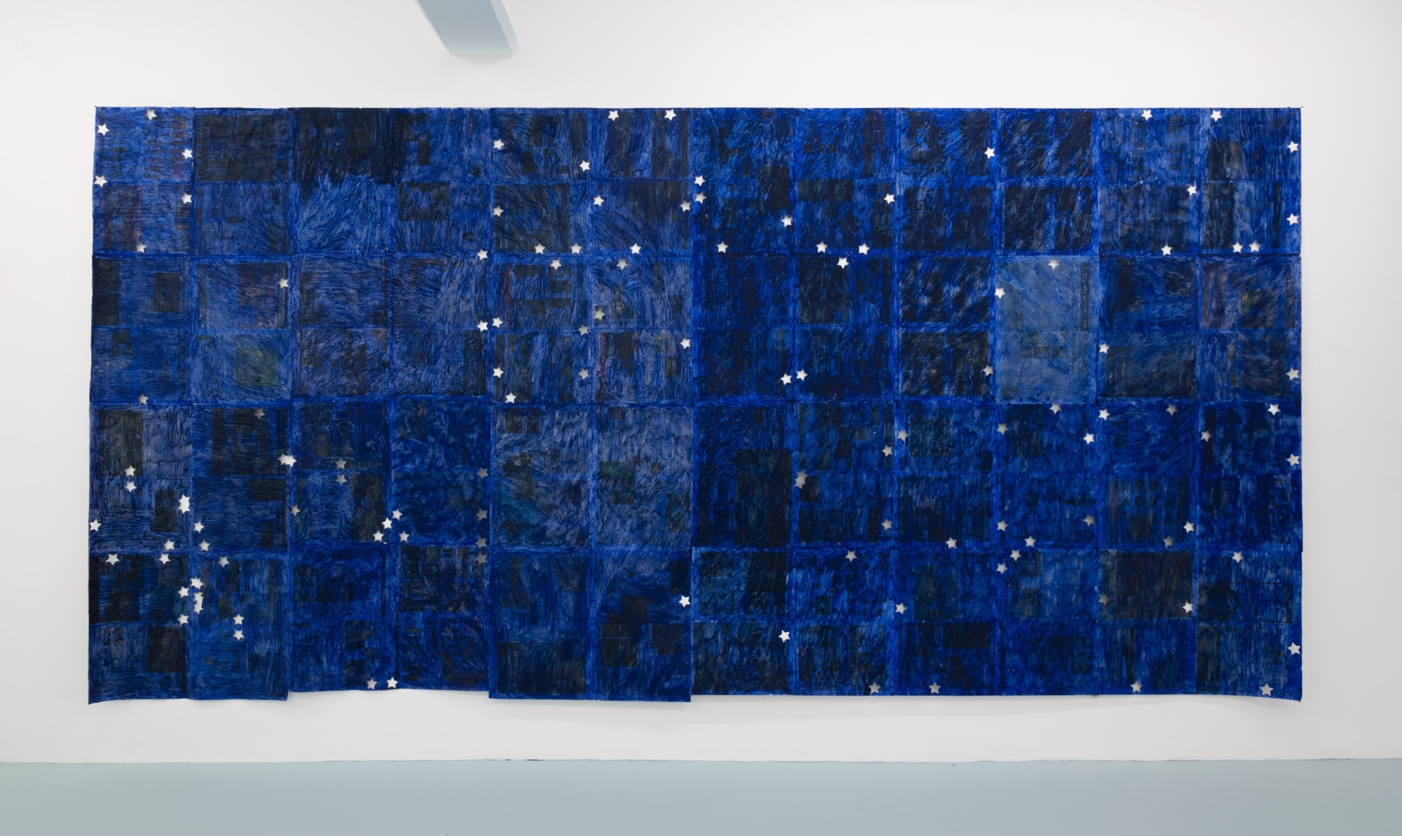Winter Skies brings together three major works: a falling aluminium chain curtain by Ruth Buchanan; a set of five photographs by Shannon Te Ao of an apparitional body spinning through space; and Ammon Ngakuru’s Night (2022), a large scale painting of the night sky on collaged newspaper with incised stars. Through these works Winter Skies reflects on a constellation of ideas: light, touch, transformation, belief, and how the mundane and metaphorical fold in on one another.