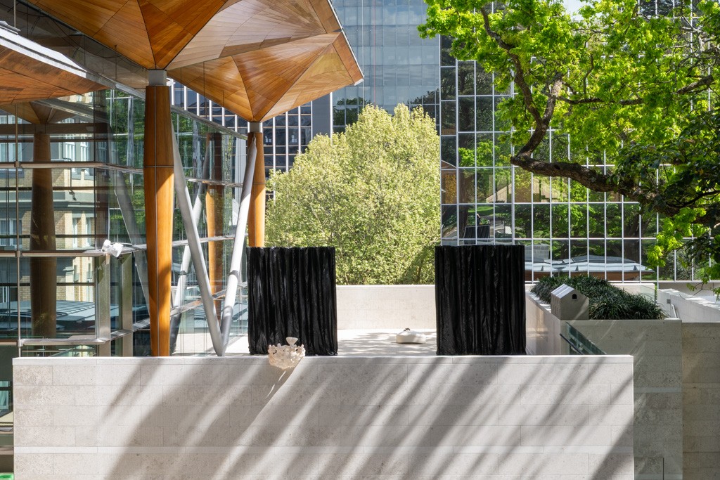 Installation view: Three Scenes, Sculpture Terrace New Commissions, Auckland Art Gallery (2025).