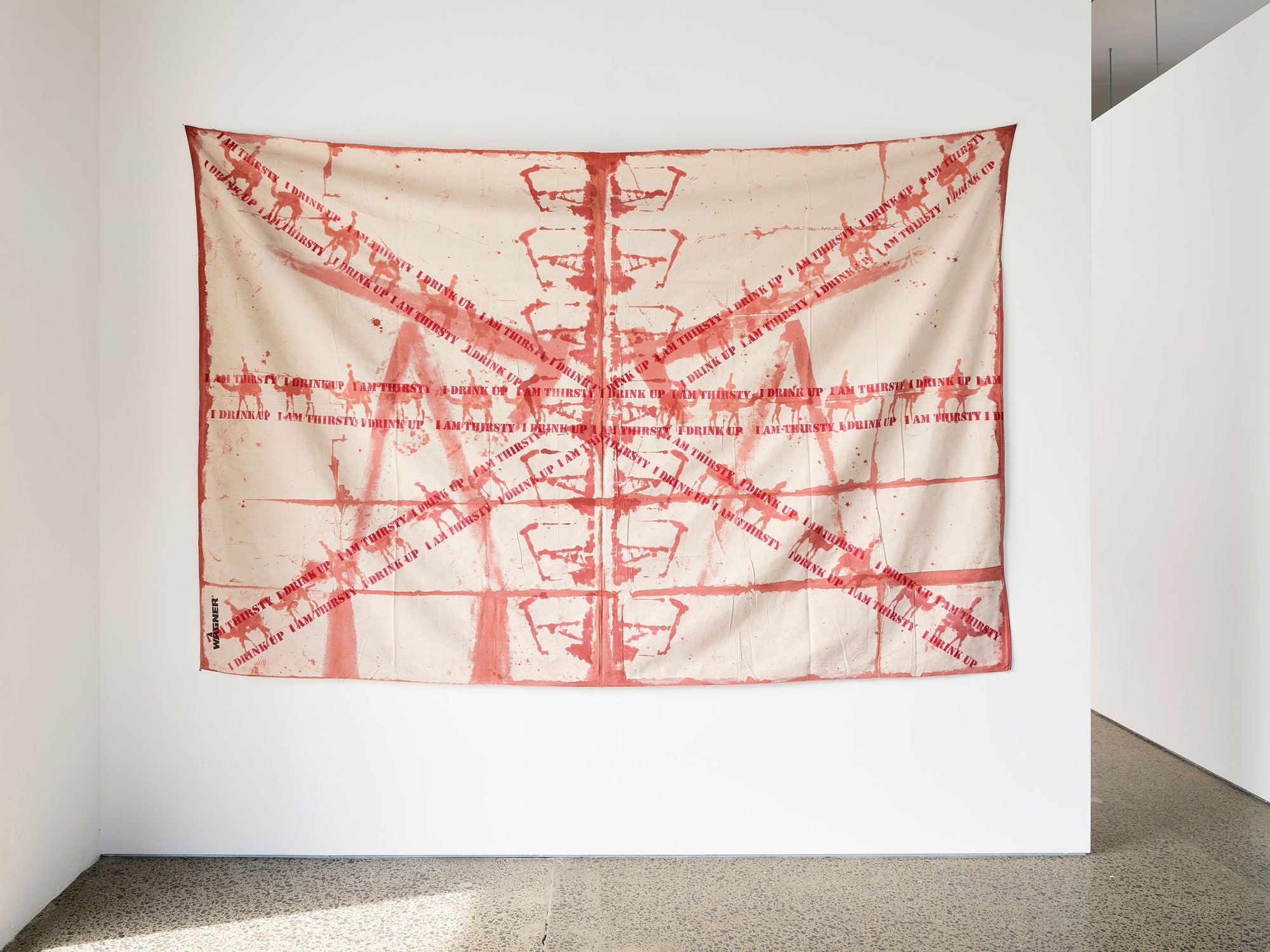 line marking paint and acrylic on canvas drop-sheet