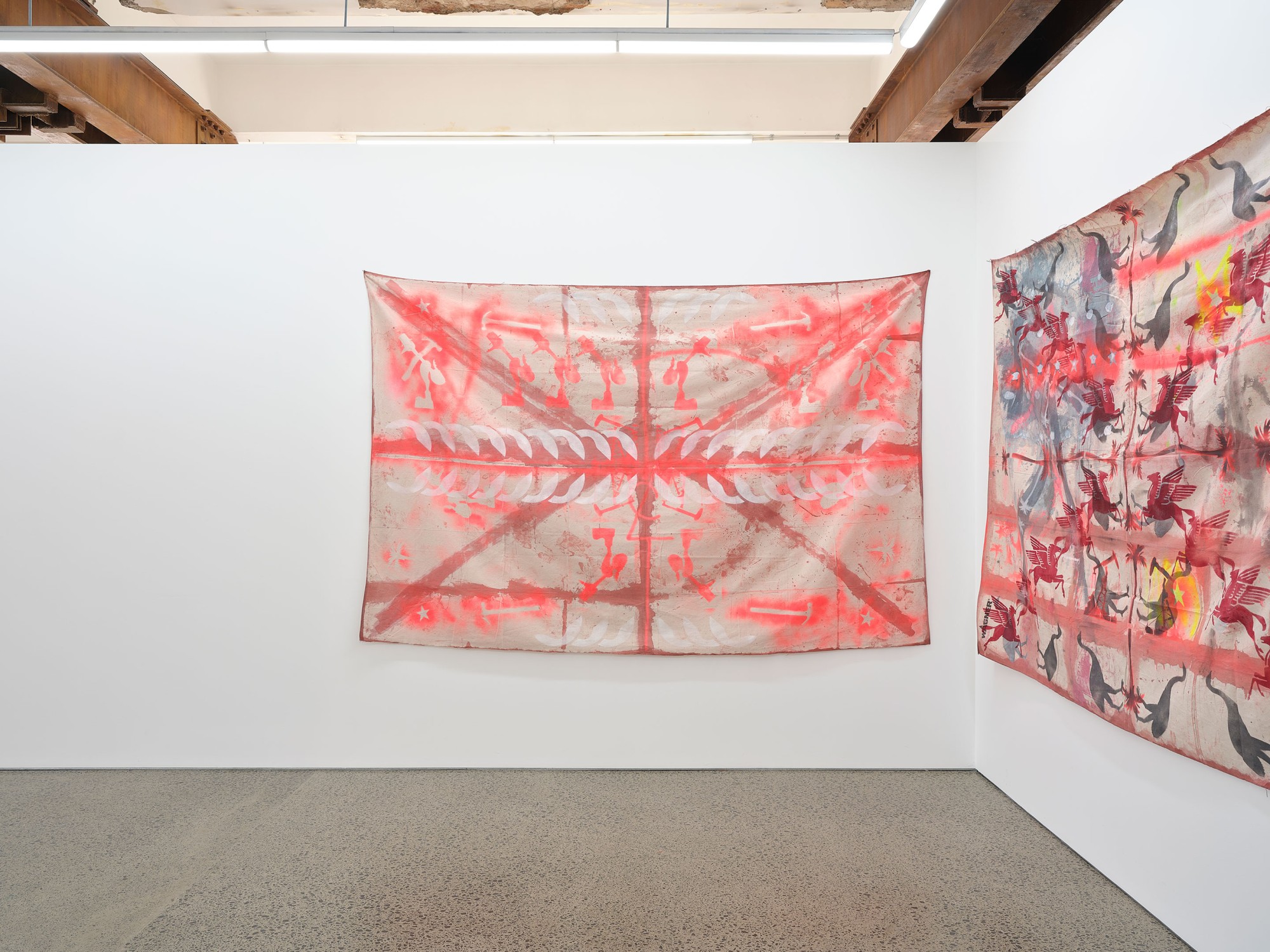 acrylic spray and acrylic on canvas drop-sheet
