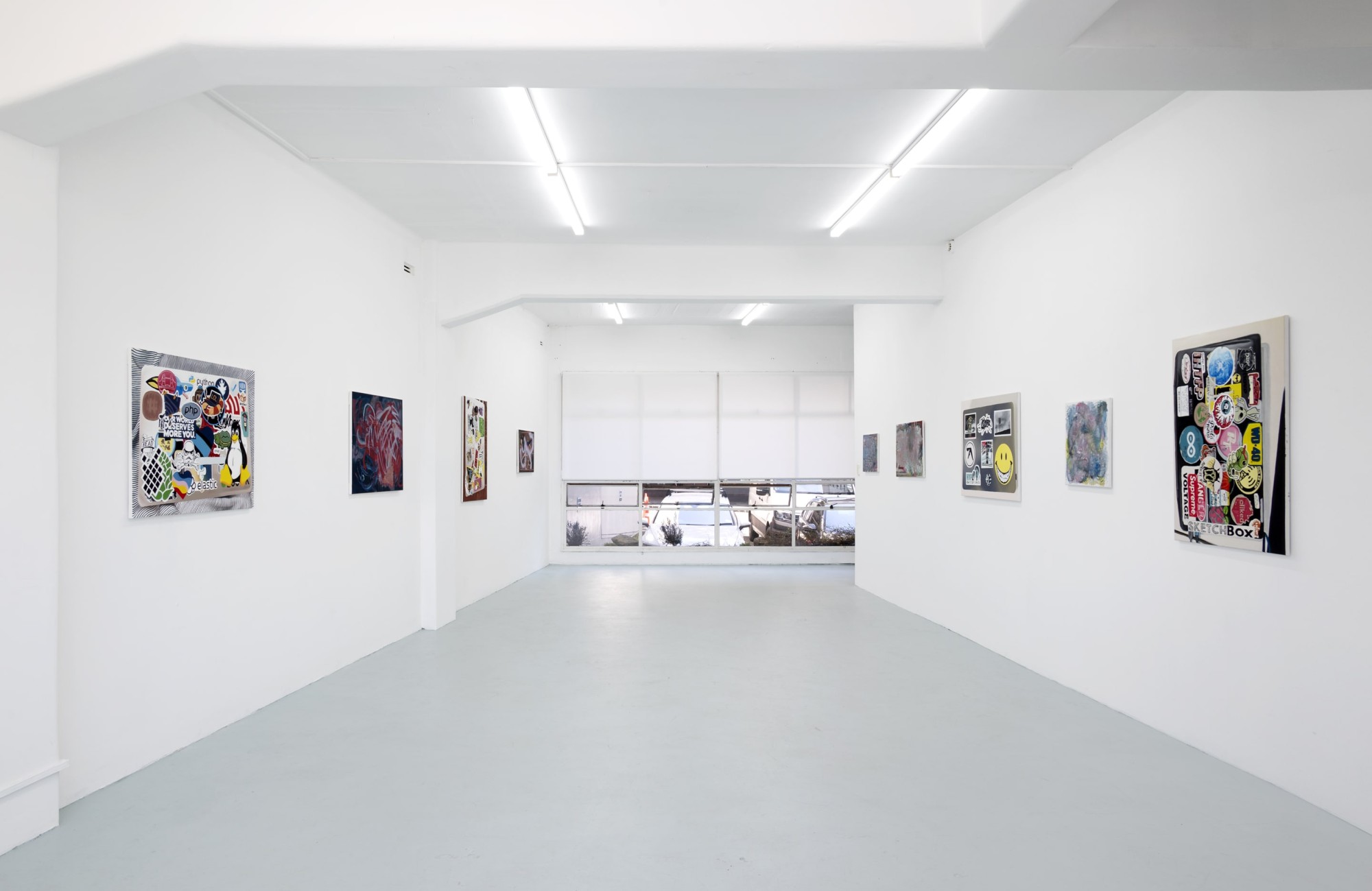 For input coverage the gallery is full, twelve paintings in total, and there is a jangly energy in the room; clashing colours, contradictory mark-making, and the uneasy mix of kitsch and criticality. Colliding with one another in a closed dataset, the paintings collapse the products of two niche subcultures to ask questions about the nature of the image and the social construction of taste, not just in wider culture but also within contemporary art’s networks.