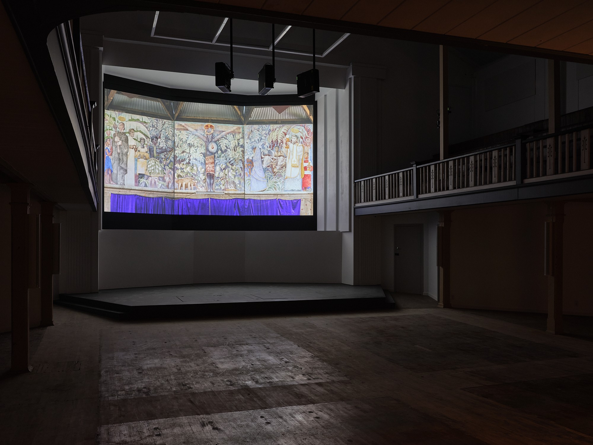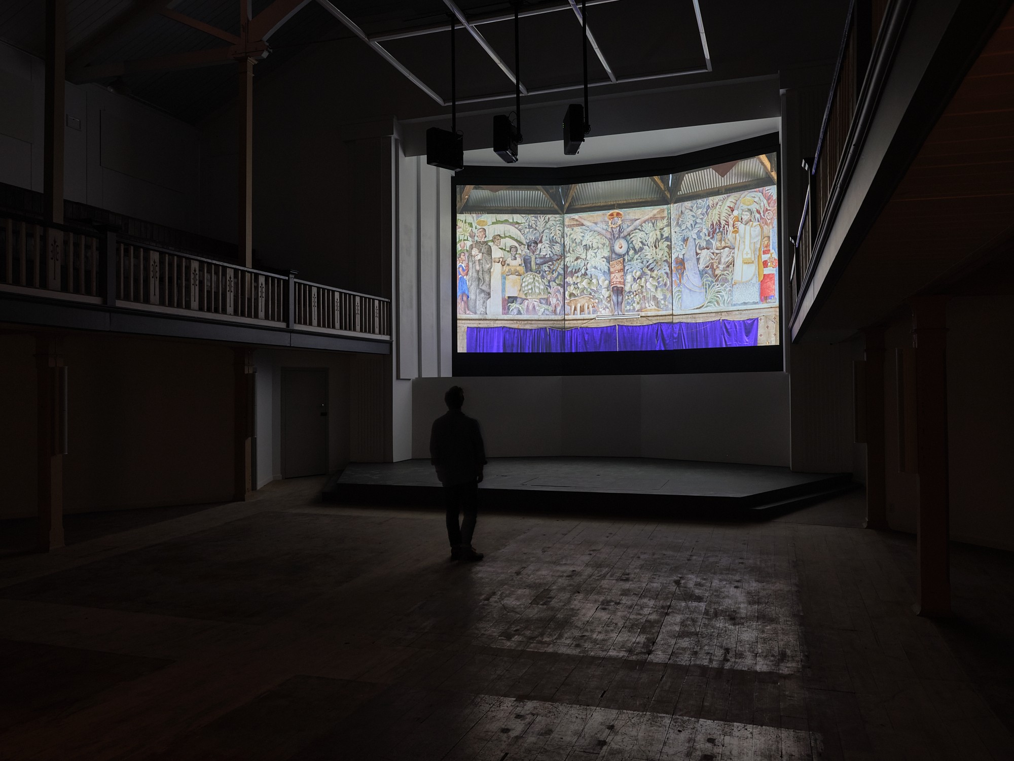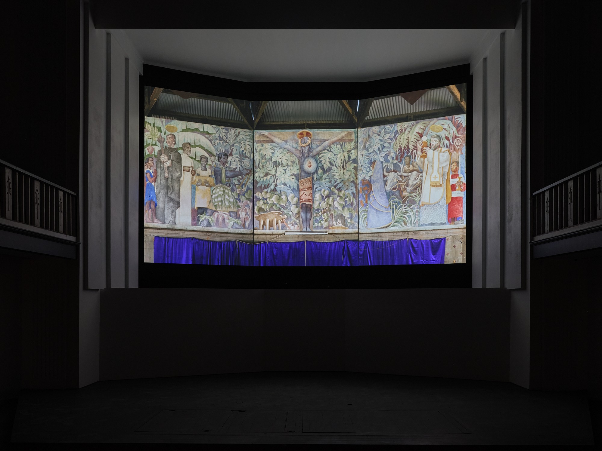Mouvement des Malades is part of a wider and ongoing exploration by the artist into potential correlations between psychosis and decolonial thought. The central work, a three-channel moving image, remembers the Fijian church of the artist’s childhood.