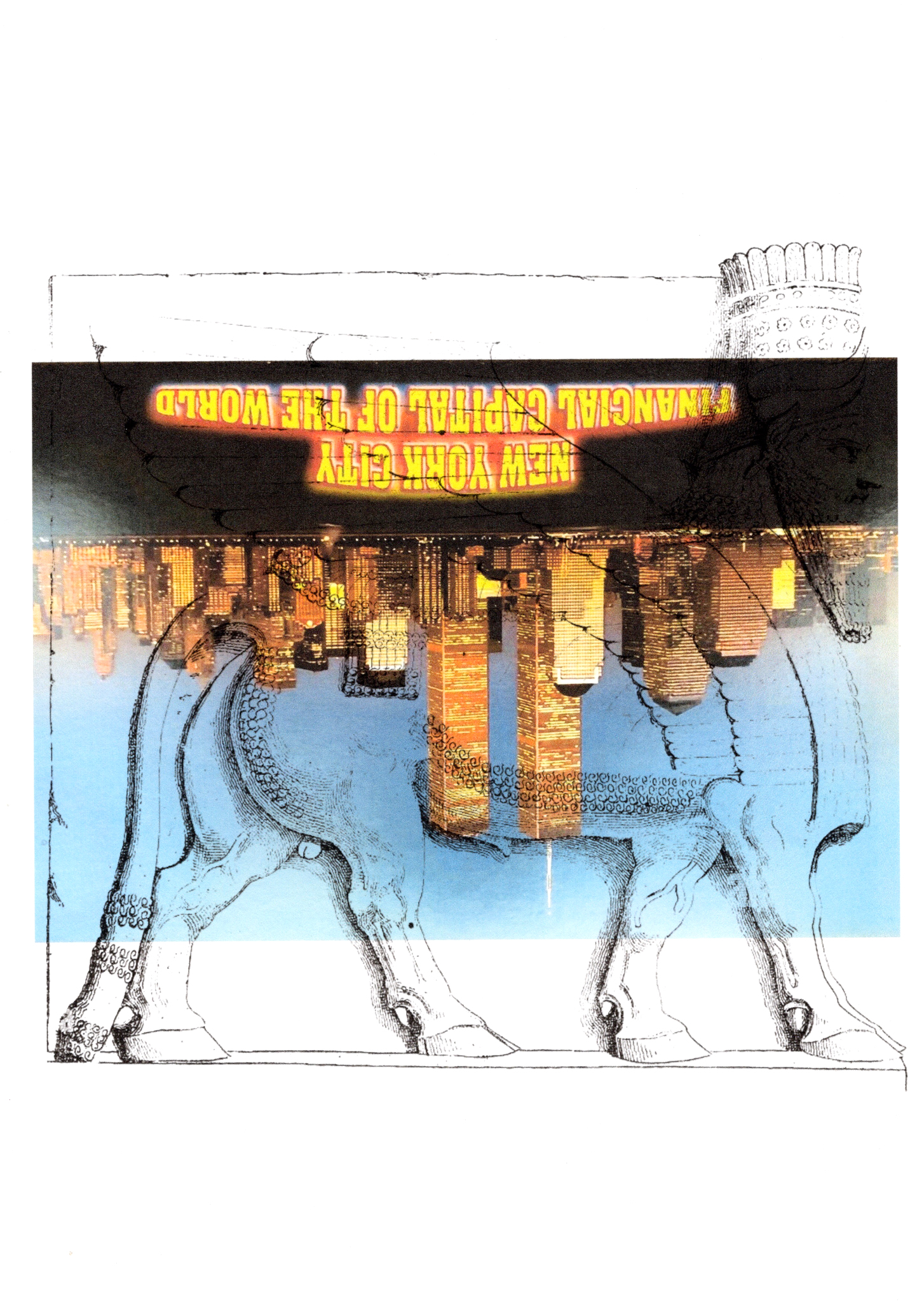 In Anto Yeldezian's recent work images from a myriad of sources are layered on top of one another. Personal, highly specific, images from the artist's family history coalesce with over-circulated media images from conflicts in the Middle East, icons of the Wild West and Disney cartoons, as well as ghosts from history painting and Eastern systems of belief.