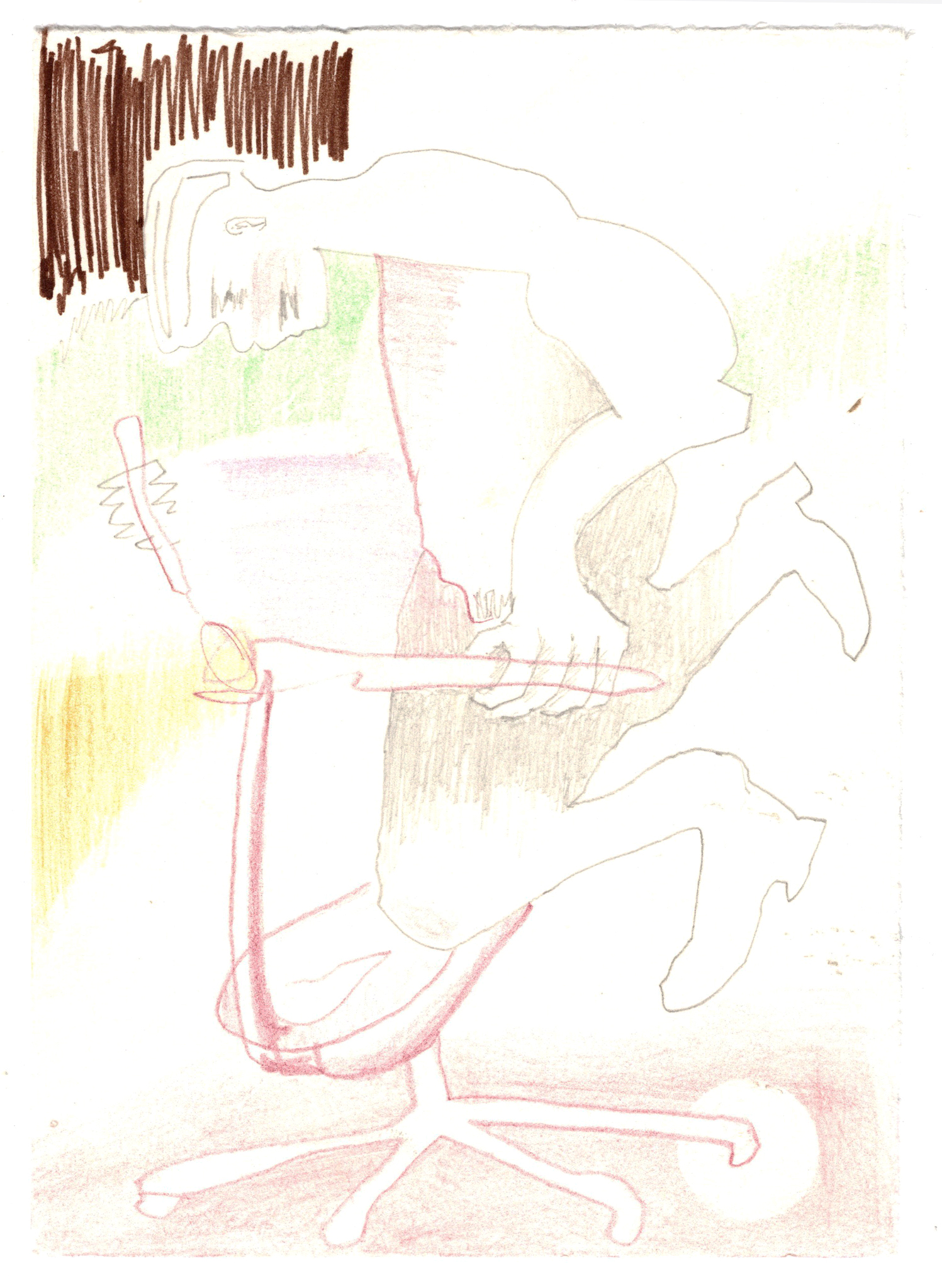 Please note: All drawings are supplied unframed. Some drawings are digital scans of layered collage, others are pencil, coloured pencil or acrylic on paper. Almost all of the works are approx. 290 x 210mm except Untitled (Chair) which is 210 x 150mm.