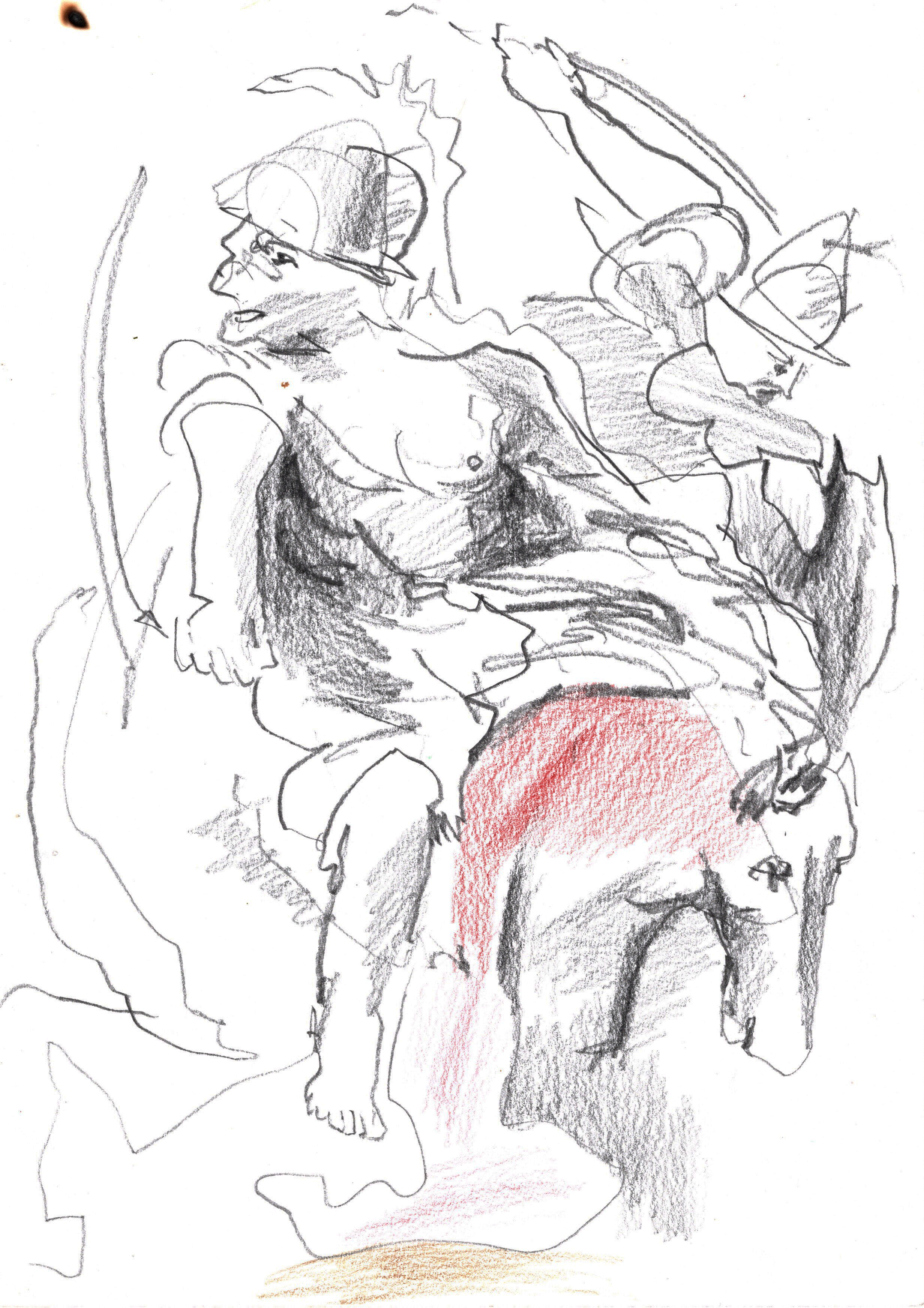 These ten drawings, made in the lead up to Monument Valley, develop both a symbolic register and a muscle memory for particular marks and silhouettes. You're invited to an evening matinee in the shadow lands before the main event; large-scale painterly tableau.