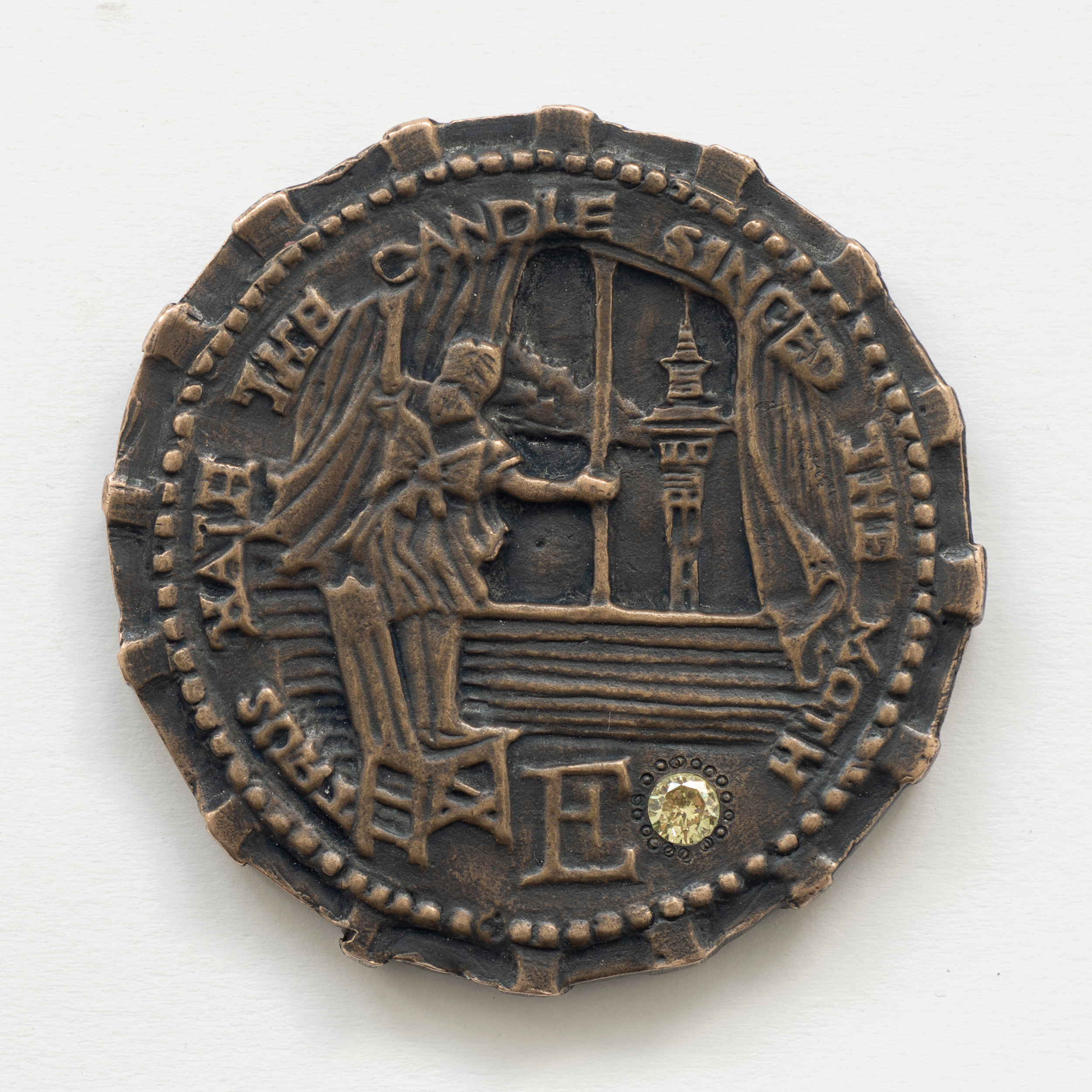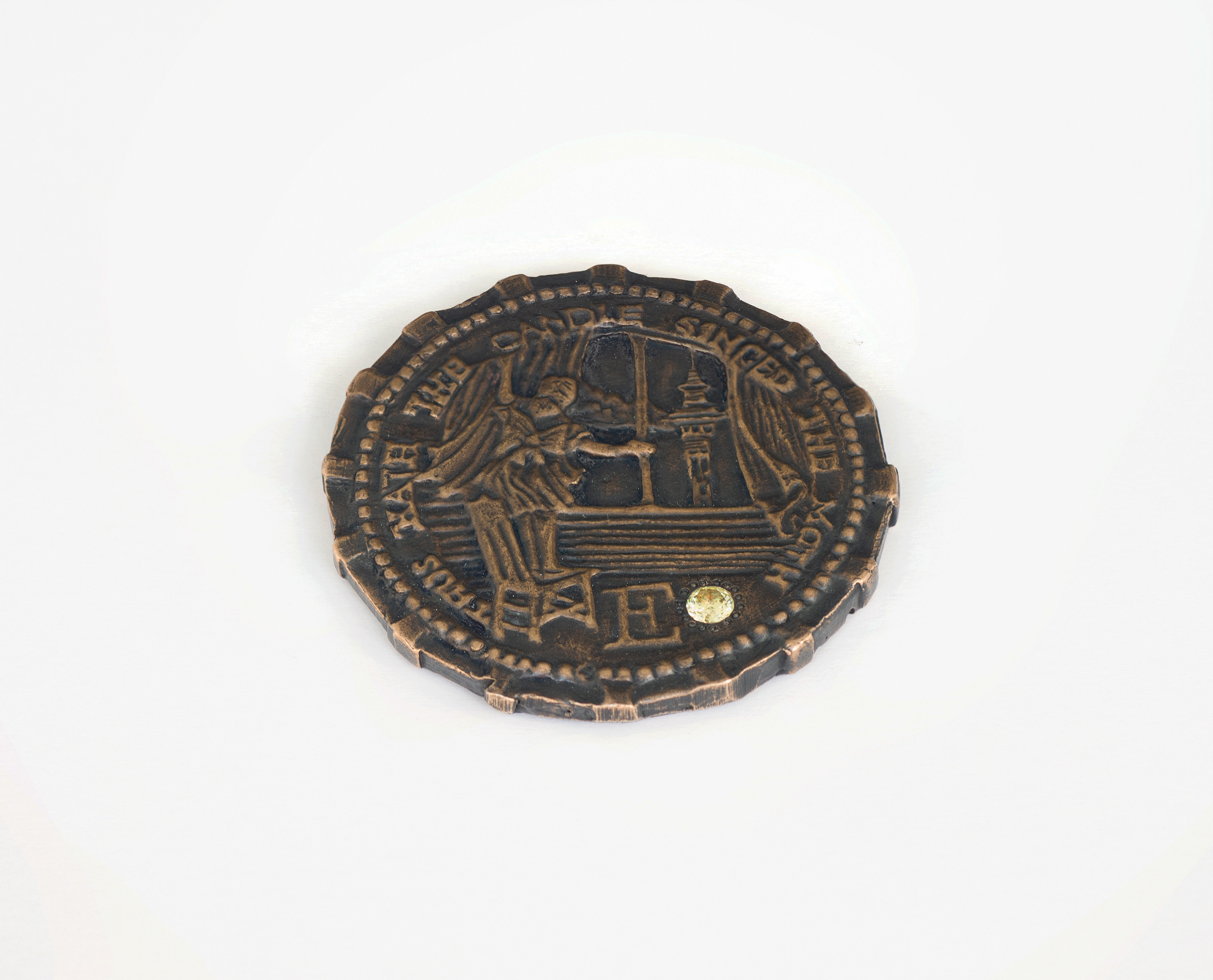 Ten coin mintage. Solid bronze cast, burnished in ultra-high relief, with an interrupted reeded edge. The image: a sombre lament for the hordes of provincial hopefuls, heads turned each night toward Auckland’s garish figurine – the Sky Tower. Verso, disappointment: a circular device in rustic likeness of an Auckland Council manhole cover.