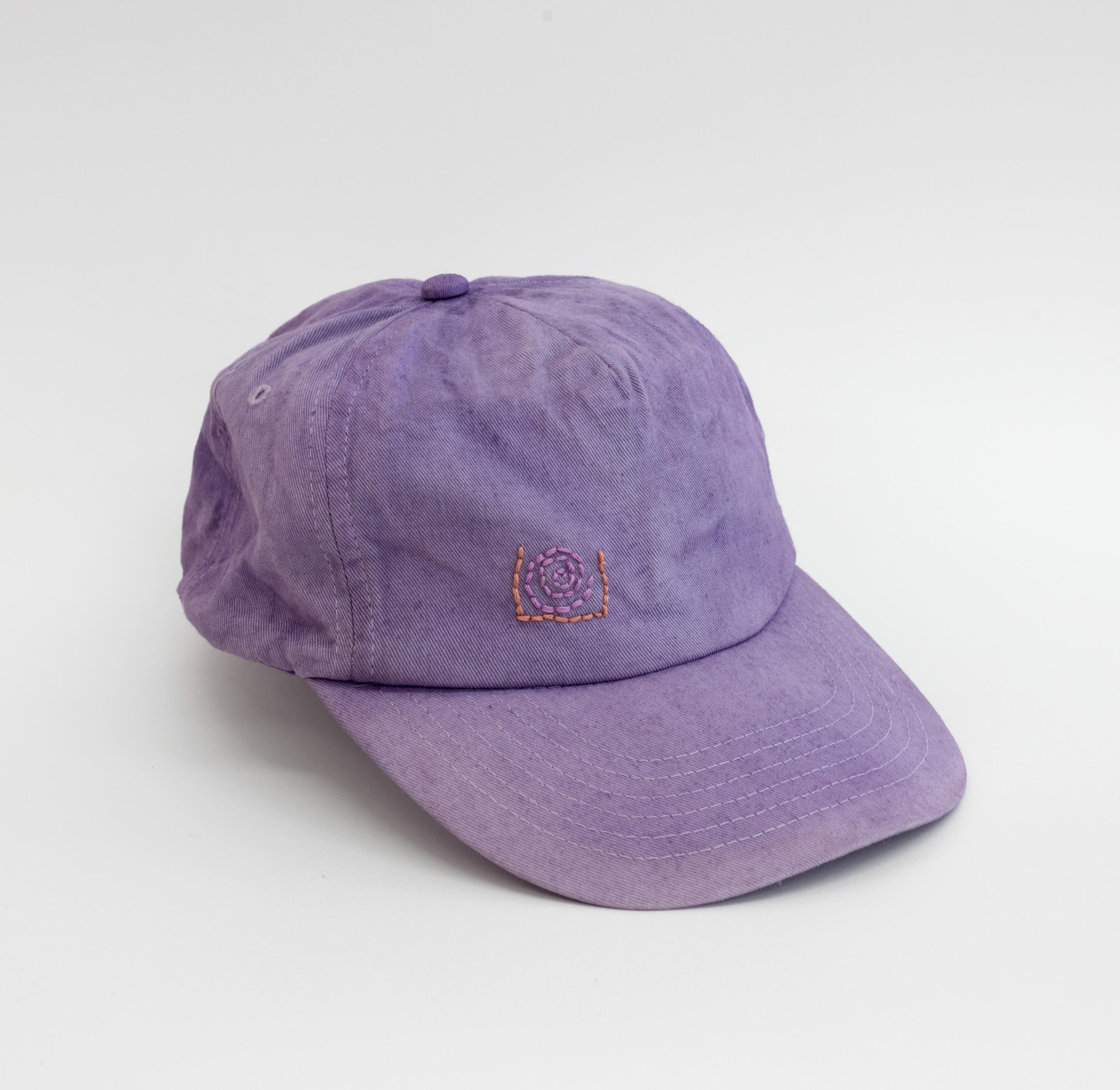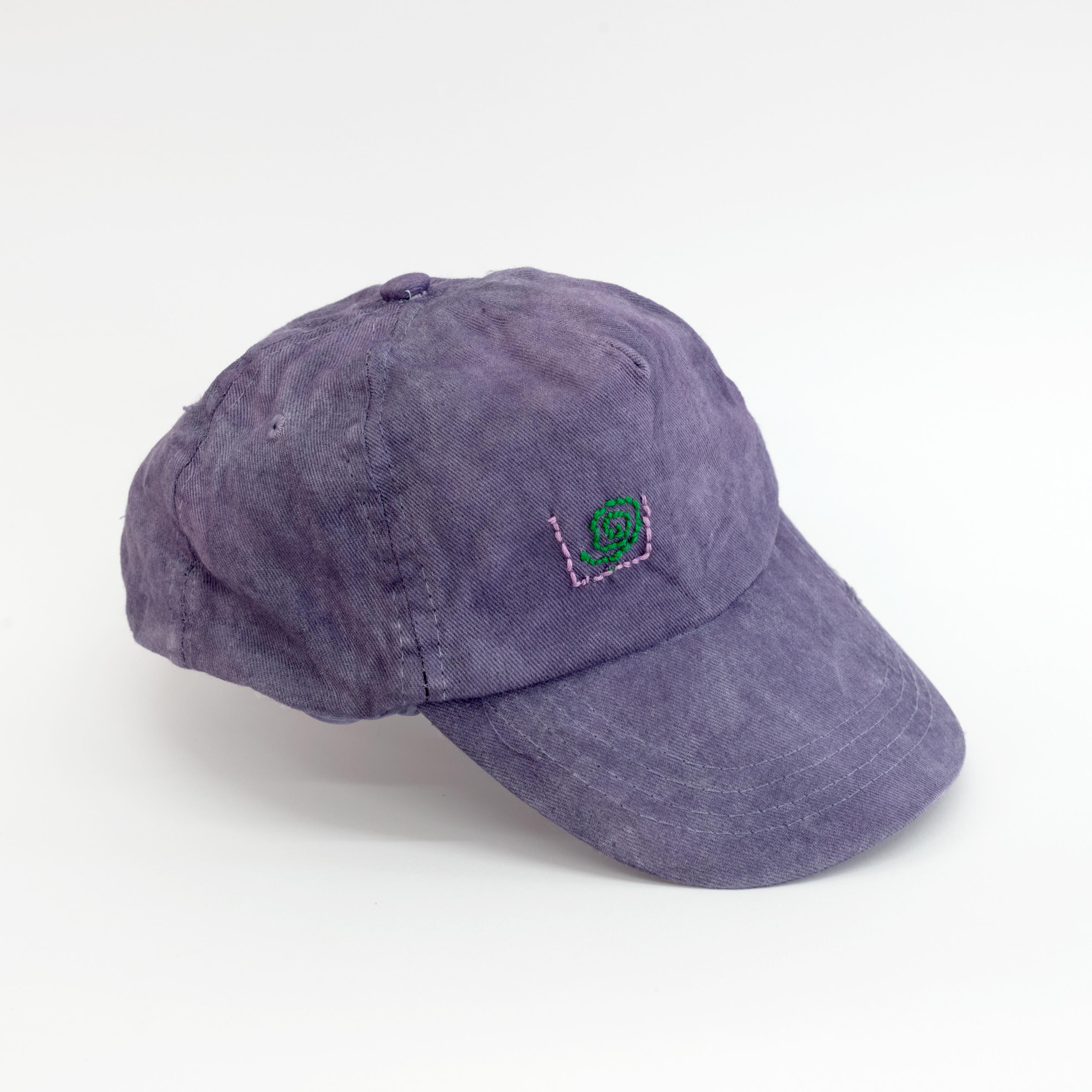 wild hand-dyed with elderberry cotton cap with unique hand embroidery