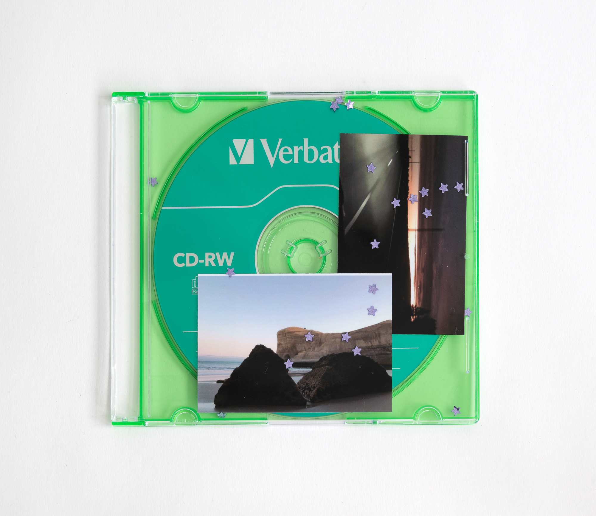12 track CD album, photo prints, star confetti, QR code access to digital album