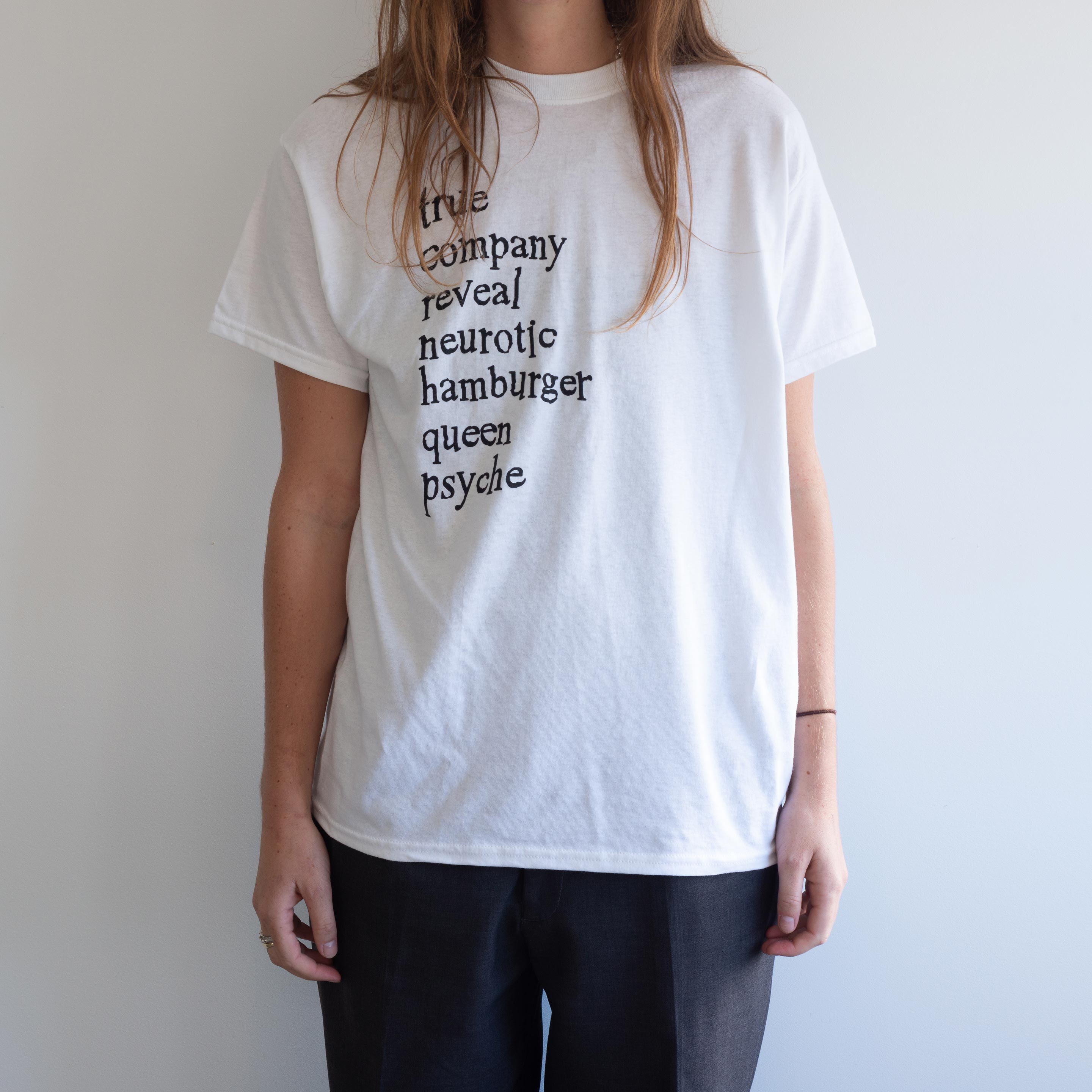 Extended click-bait dive as brand alliance; the Headline tee ☜(ˆ▿ˆc) takes the algorithm to the street. Automatically generated by uploading a month’s worth of article titles to the artificial intelligence neural network OpenAI, the tee reproduces inane online behaviour as a wearable slogan. Model wears size M. Also available in XL.