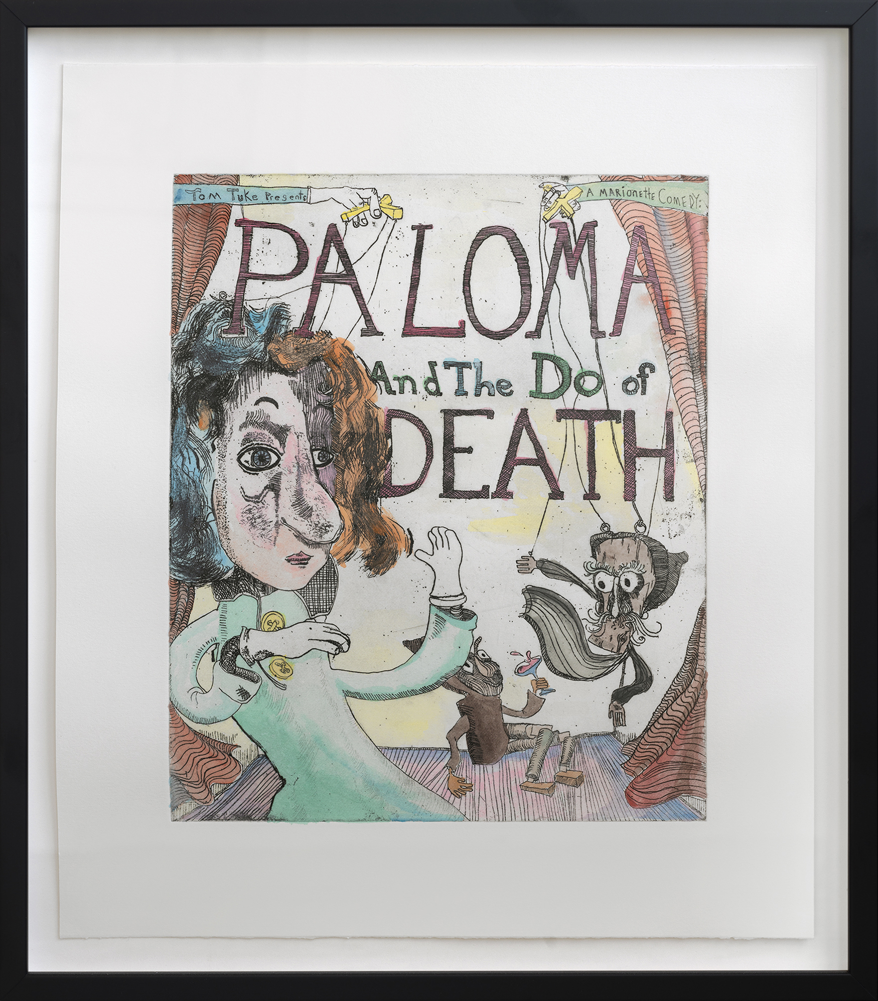 Coastal Signs is pleased to help our friend Tom Tuke fundraise for his upcoming Masters at the University of Connecticut’s Puppet Arts programme. Paloma and the Do of Death is an etching of the poster for Tuke’s well-loved marionette show. Let the magic live on!
